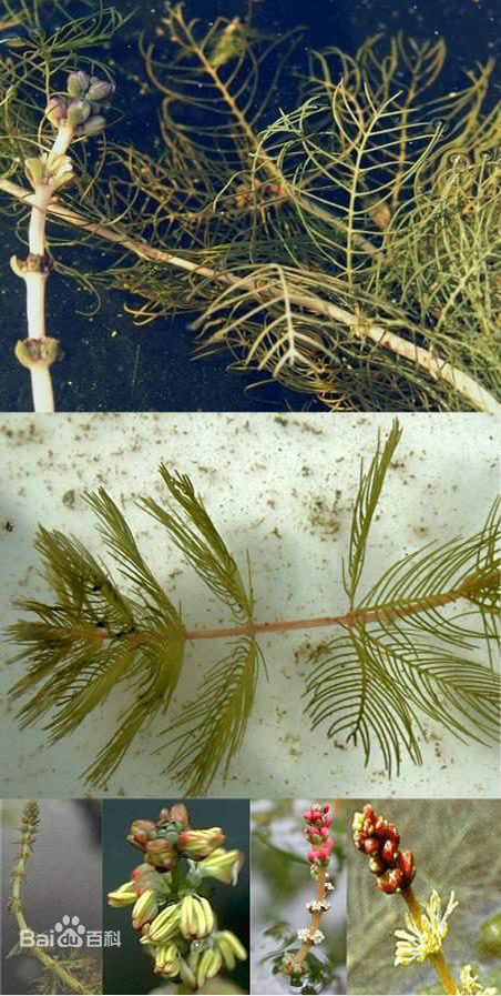 根状茎生于泥中,节部生长不定根。茎圆柱形,直立,常分枝。叶无柄,丝状全裂。穗状花序生于水面之上,雌雄同株。