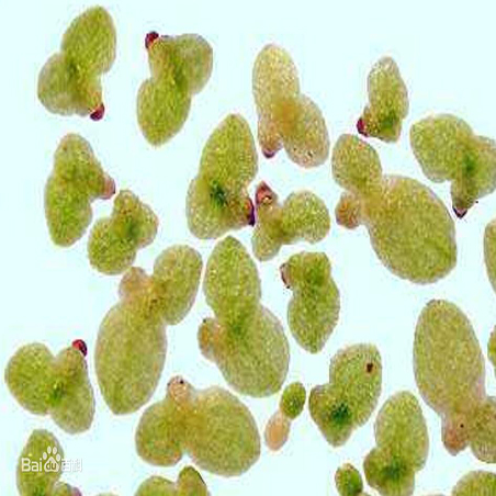 几叶状体膜质,狭倒卵形或长圆形,3-5脉,长4-6毫米,宽1.5-2.5毫米,表面绿色,背面紫色,根3-5条,甚长。 [1]