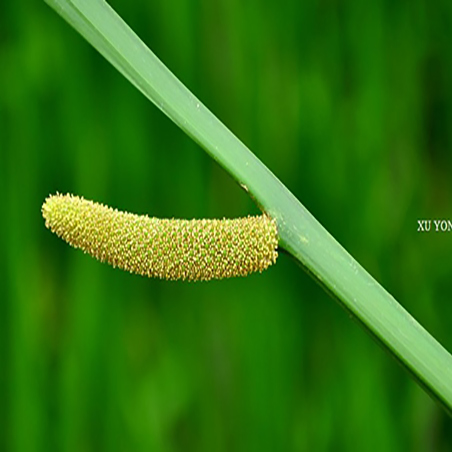花序梗二棱形,长(15-)40-50厘米;叶状佛焰苞剑状线形,长30-40厘米;肉穗花序斜上或近直立,圆柱形,长4.5-6.5(-8)厘米;