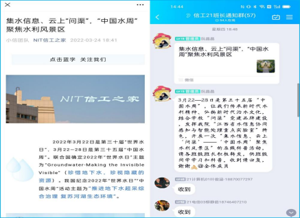 3月22日至3月28日,信息工程学院开展了“集水信息、云上‘问渠’,‘中国水周’聚焦水利风景区”主题线上水文化宣传系列活动,全院师生参与活动。